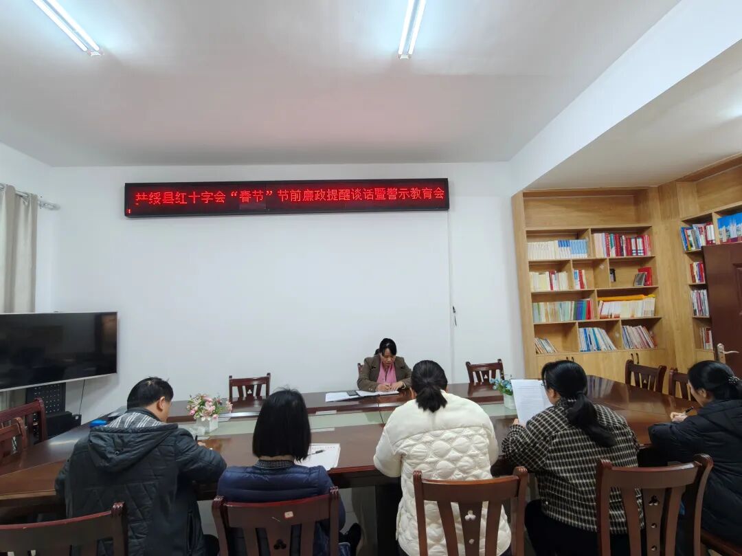 2月13日,扶绥县红十字会召开2026年“春节”节前廉政提醒谈话暨警示教育会。会议由常务副会长主持并作廉政谈话,会全体干部职工参加。