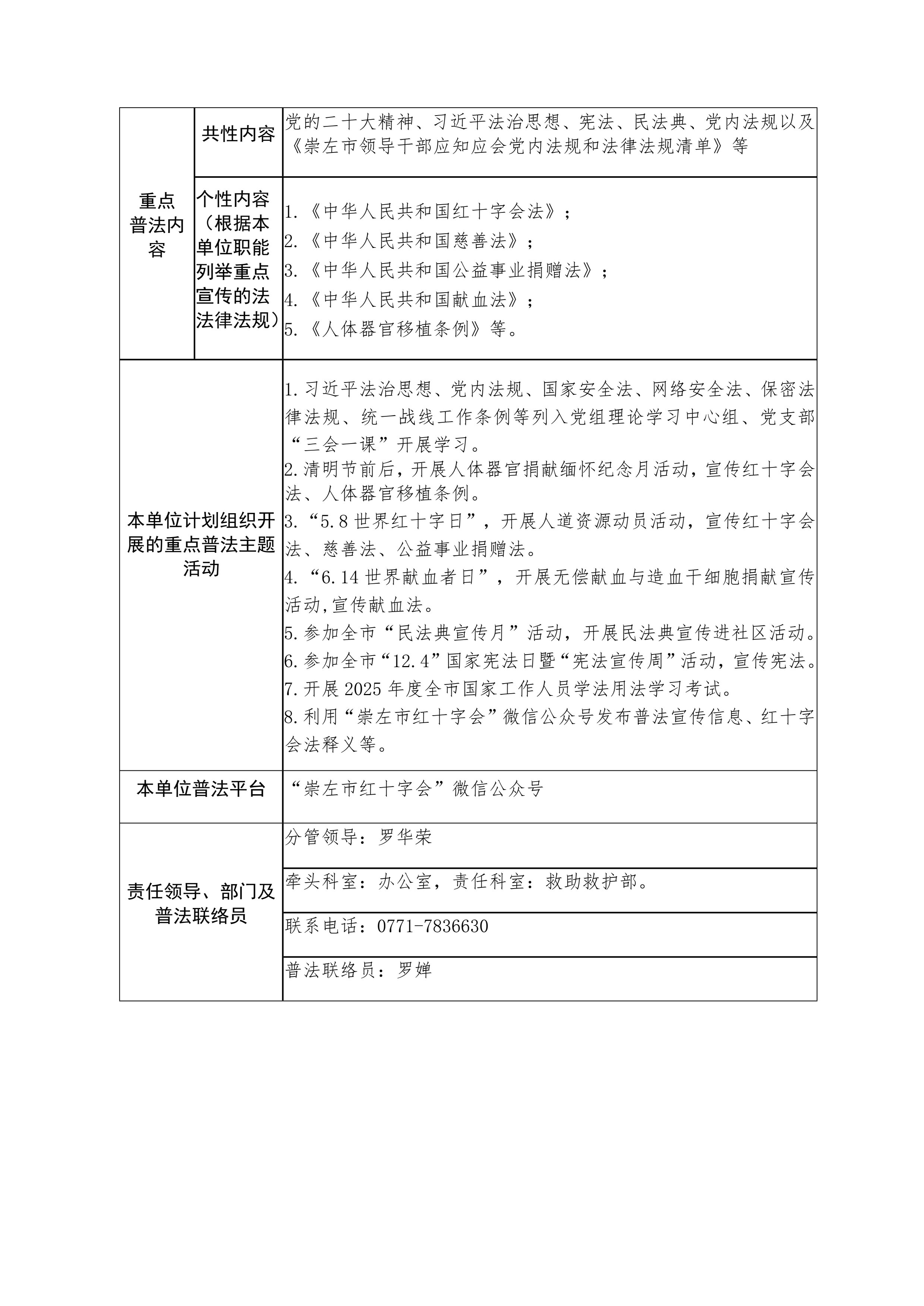 2025年度崇左市红十字会“谁服务谁普法”普法责任清单